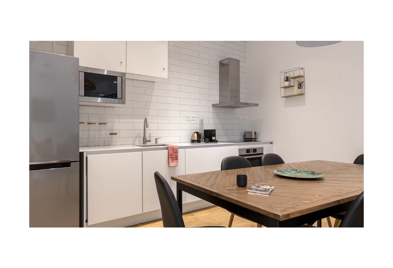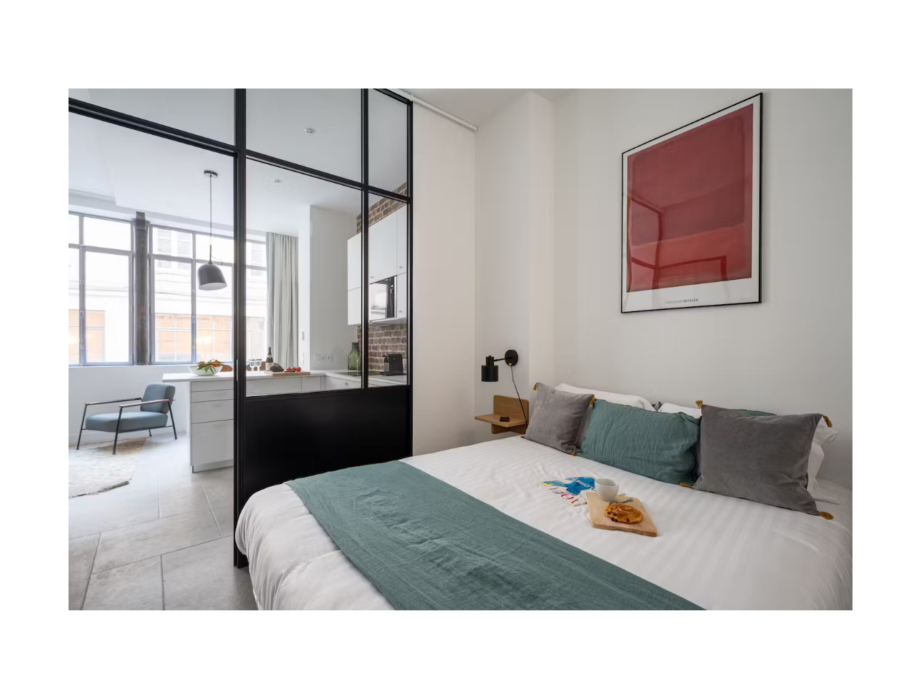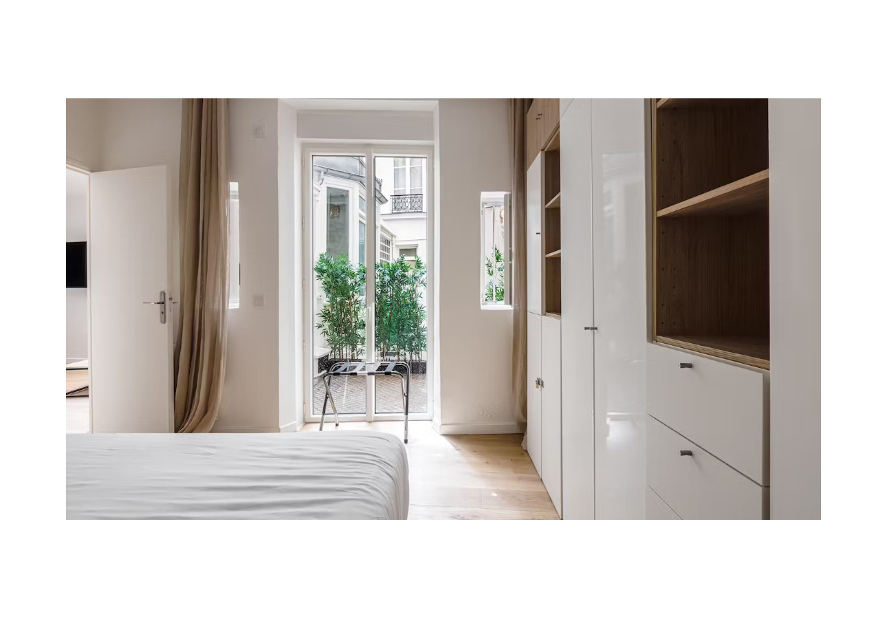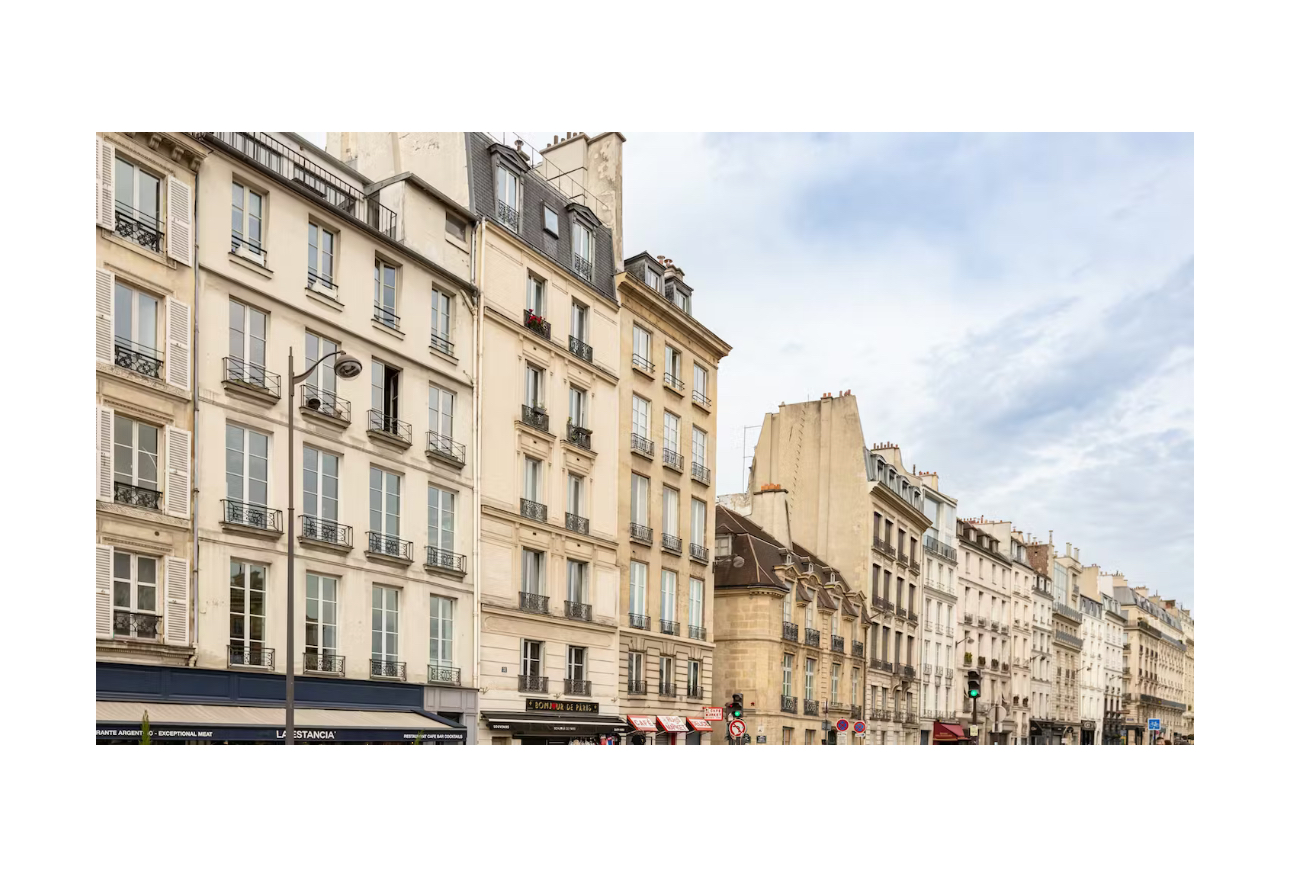 What a treat this home is. Set in one of our favourite parts of the city, just on the banks of the river, it's tucked away in such a peaceful little courtyard you may find it hard to comprehend you're in the centre of Paris. This ground-floor apartment has been refurbished recently and mixes period features like high ceilings with modern minimalism, a sleek white kitchen and a touch of industrial styling. Comfortable, bright and surprisingly private, it's a real retreat away from the bustling city streets. Step outside each morning and grab a coffee and croissant as you stroll along the Seine – it's just a six-minute walk to take in the impressive view of Notre Dame, currently being restored. Close to the buzzing Latin Quarter, there's no shortage of great places to eat, drink and shop, and most of the city's big attractions are within walking distance.