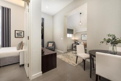 It has a large living/dining room (including TV), one bedroom, a bathroom and a small separate hall area. The kitchen is fully-equipped, with a cooker, fridge, dishwasher, microwave oven, coffee machine and a kettle.