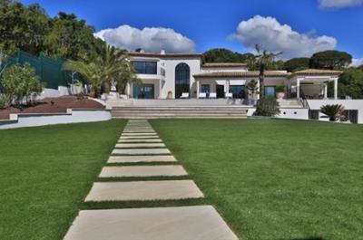 In an exceptional setting overlooking the sea, splendid modern villa of around 330 m² with a living room of 100 m², high quality designer appointments and spacious interiors. Living room of 100 m² • Dining room • Kitchen equipped and arranged with cupboards • 4 bedrooms • 3 Bathroom with Shower(s) • 1 Bathroom(s) • Summer kitchen • 4 WC. Garden : fenced • Garden • 5 Terrace(s) of 200 m². Air-conditioning • Heating : with Fuel • Double glazing. Orientation : South. Swimming pool in rectangular shape heated (11 x 6 m) • Satellite Dish. Distance to the beach : 1 km. External lighting system • Automatic watering system in the garden • Automatic Electric Gate • Alarm system • Interphone/Videophone. Garage (2 places). Roof : finished with old tiles • View : Very nice view over the sea. Contemporary Style • Interior Finishings : Luxurious • Construction Type : Traditional • Built in 2005. Living surface 330 m², Land surface 3300 m². Condition : Immaculate.